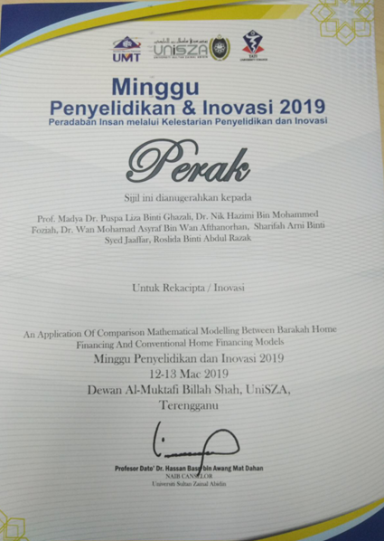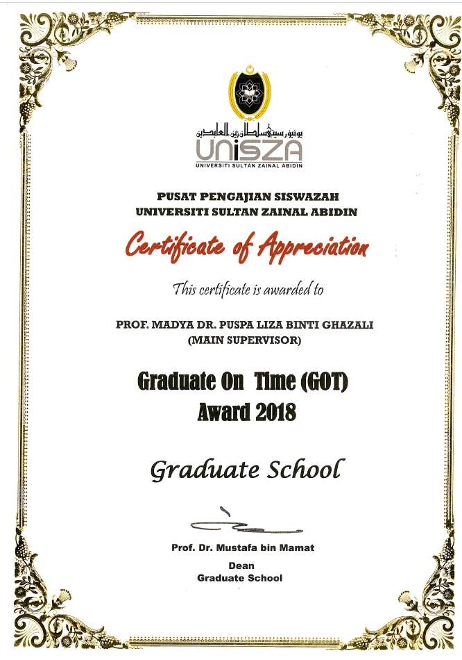 | 58 | Main supervisor-UniSZA | Pemeriksa Luar Sarjana | University | 2017 - 2017 |